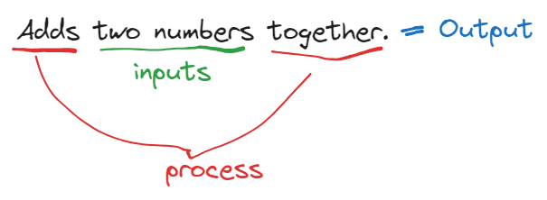 Listen up buttercups. First. Figure out what is being provided to you, what are the required data to solve the problem. That is your input. Second. Figure out what needs to be done to the said data to turn it to the required result/outcome. Congrats you have the process. The third is the result of that process.