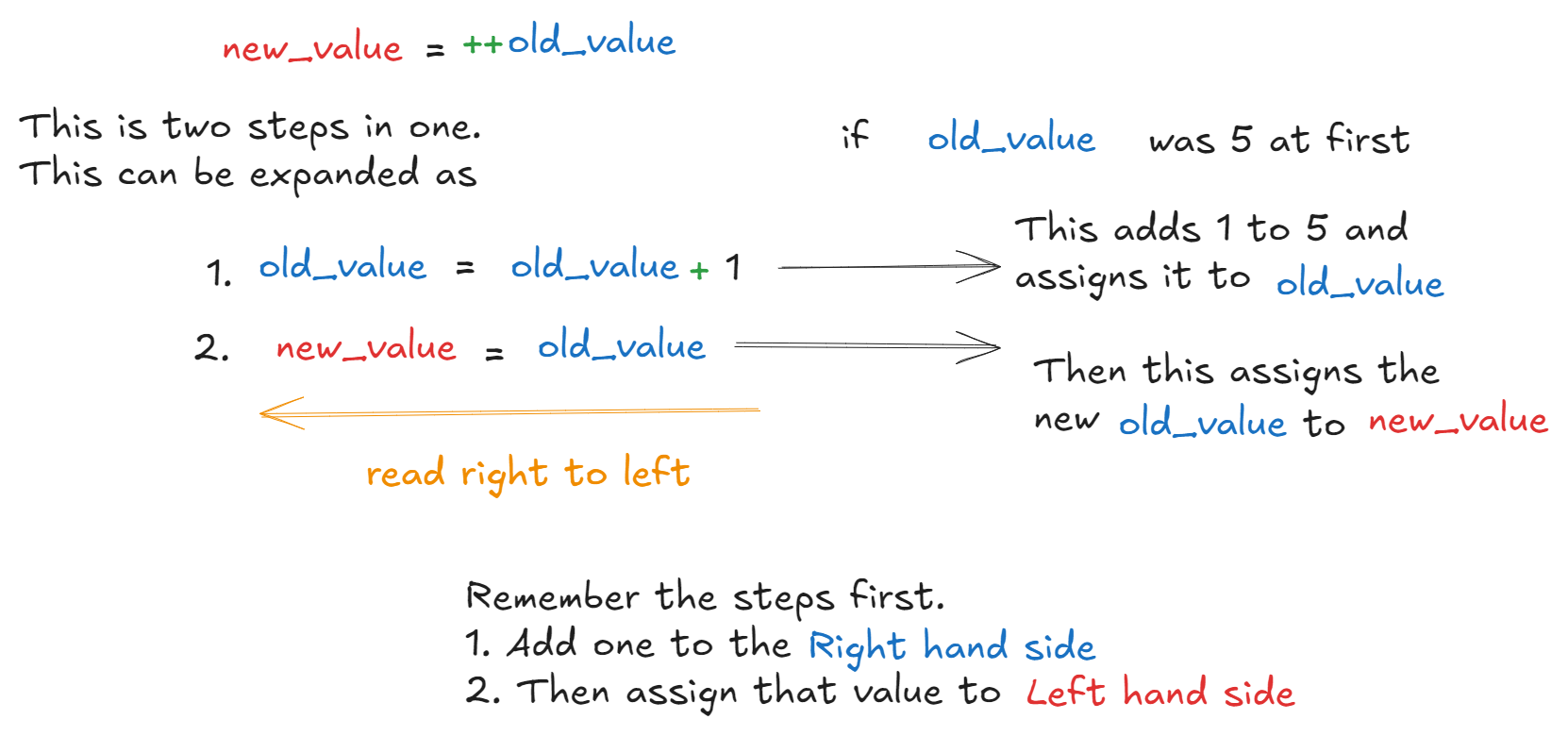 So what does this mean? In prefix, whatever happens, happens first before coming to the next word. in Postfix the name comes first before whatever happens. I’ll explain it. So; In increment, we have two variants