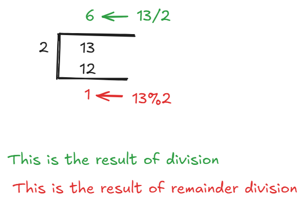Also, normal division returns the rounded up value. Also, there’s like order of how these things happen. Its called BODMAS